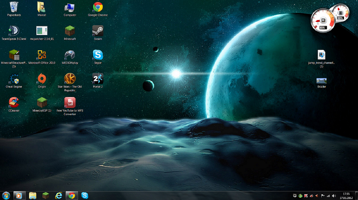 @Feder Ja, bei Windows 7 gibts ein sehr nützliches Programm Namens Snipping Tool. Da mit kann man den Desktop oder Teile davon ausschneiden. Aber für den gesamten Desktop geht Trojaner seine Methode besser