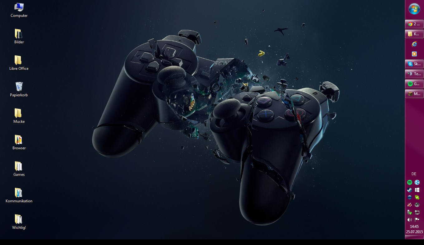 Hab noch nen zweiten Bildschirm, aber dort ist das gleiche Hintergrundbild & nur ein 3D-Visualisierer für die Programme untenlinks, ansonsten ist der leer, da ich den meist nicht benutze. -