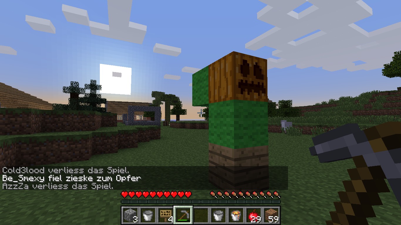 User berichten immer wieder von Sonderbaren Geschehnissen. Über alle auf dem Server erscheinen Seltsame Statuen, bestehend aus zwei Hellgrünen Wollblöcken, einem Holzblock mit einm Kürbis Kopf (siehe screenschot). Auch wurden Anonyme Nachrichten ein einige User gesendet. Die Administration habe keine Erklärung dafür, versicherte aber sich der Sache anzunehmen.