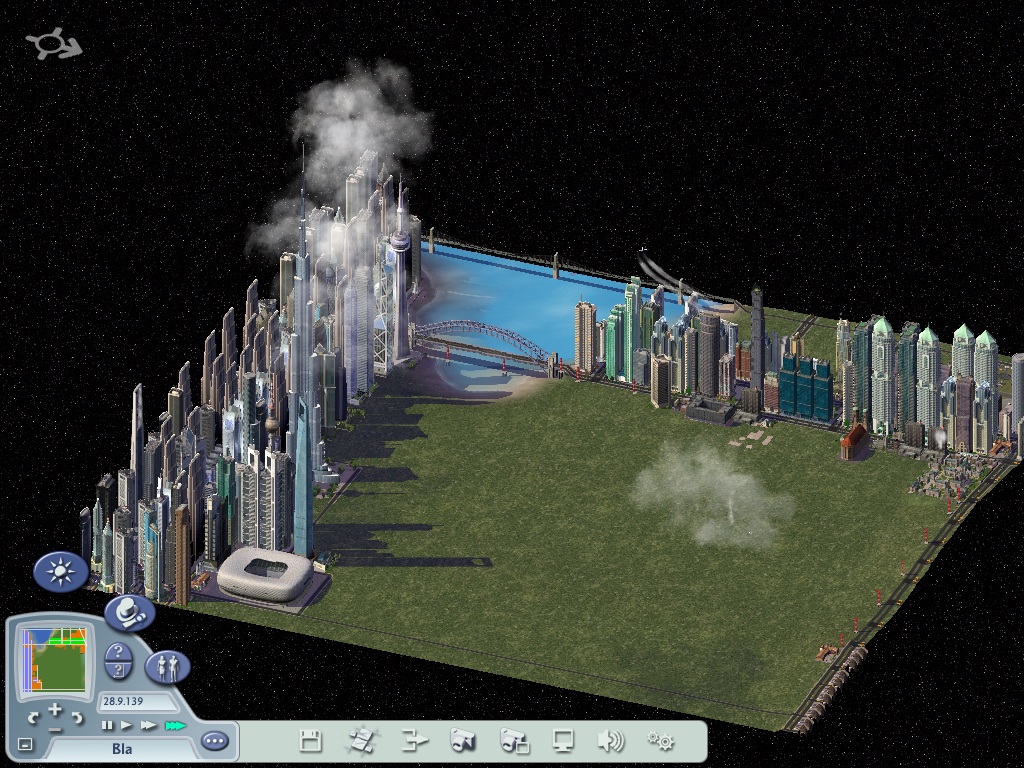 Wieso sind bei dir so rießige Wolkenkratzer in einer so mini Stadt? ich habe es nie geschaft so etwas zu bauen und wenn es mal dort in die nähe kahm gab es sofort ein Verkehrschaos :o