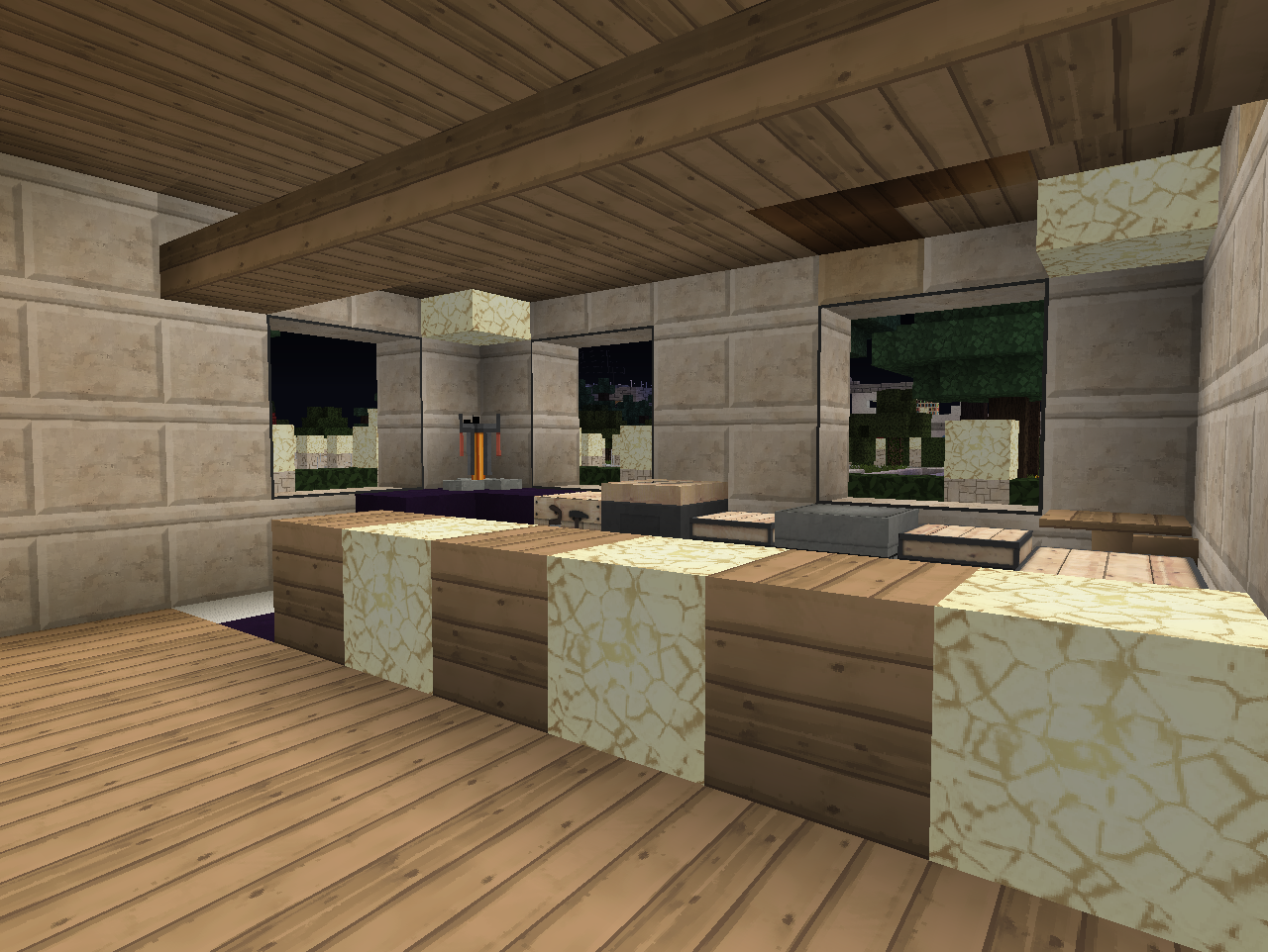 und Schlafzimmer (durch Lianen abgegrenzt)