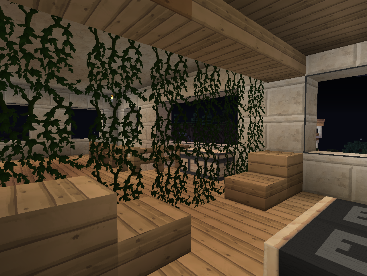 und Schlafzimmer (durch Lianen abgegrenzt)