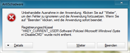 Das Programm soll nach einem "DisableCMD" Eintrag suchen. WENN es diesen Eintrag gibt, DANN soll er mit dem Befehl unten gelöscht werden, SONST soll das Programm nichts machen.