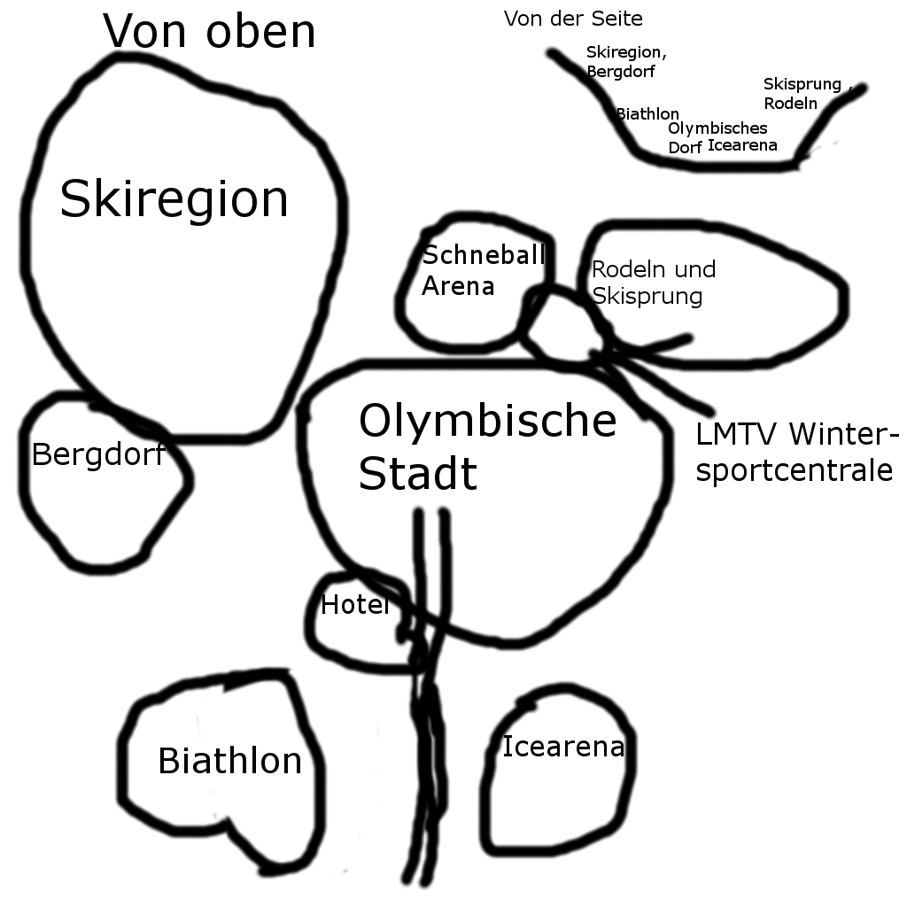 Nunja, auf den Bildern sieht man etwas von den Distziplinen(aber nicht alle, wiel ich nicht soviele hochladen kann). Sie sind etwas schnell gebaut worden, lässt sich also noch optimieren. Die anordnung ist nicht bindent, die man auf den Screenshots sieht. Dafür sollte man die Skizze nehmen. Dieser Lageplan kann natürlich geändert werden, Inhalte entfernt, hinzugefügt oder verschoben werden