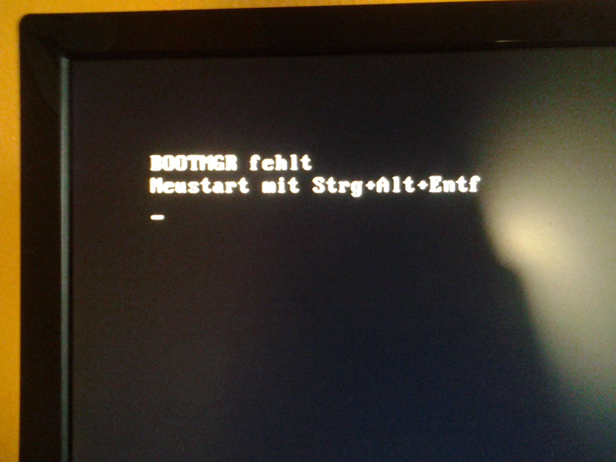 Mein Windows hat ein Problem gefunden welches ich reparieren wollte. normal eben neuStart und dann kommt BOOTMGR fehlt