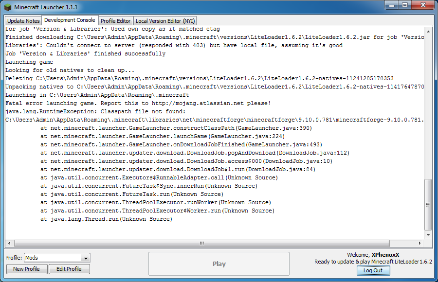 12. Jetzt wählt ihr unter "Profile" die Version(Bei mir "liteloader") aus und startet das Spiel!