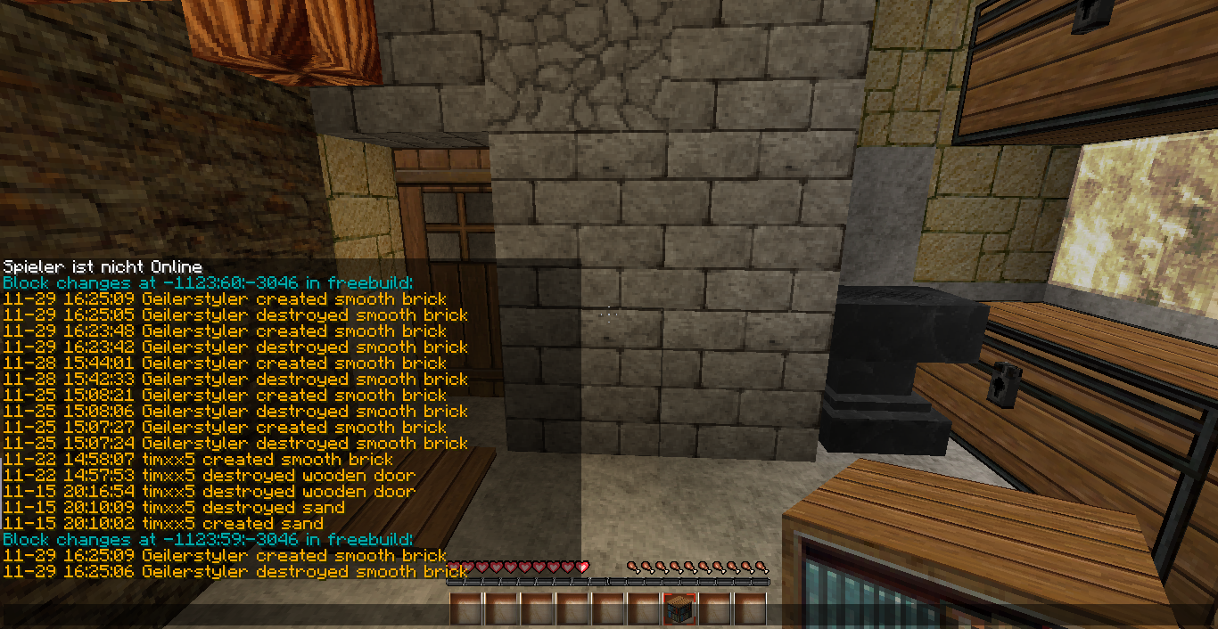 Geilerstyler hat bei timxx5 im gegrieft! Gestohlene Gegenstände: 4x smooth brick (2gesetzt) Gesamtzahl der Blöcke: 4 Strafe: 1600 Mark 30 Minuten Jail PE-Nummer:1507 [Strafe offen] Vollzogen am 17.01 by Sebiii_ [Konnte Geld nicht Zahlen, wurde in Jail umgewandelt]
