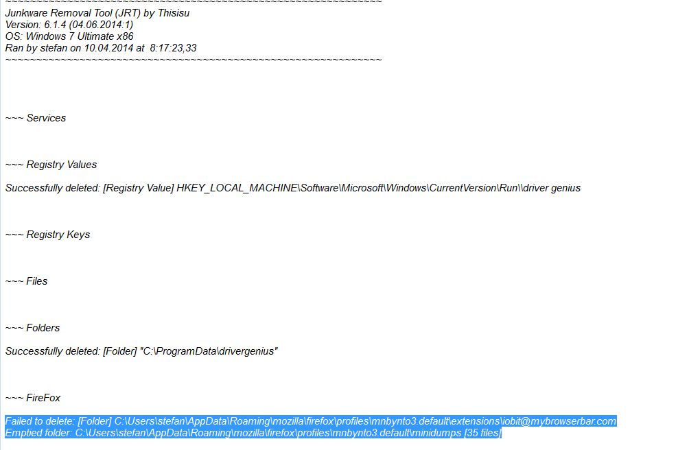 schau mal bei firefox - addons - erweiterungen, da steht das die iobit nicht gelöscht werden konnte.