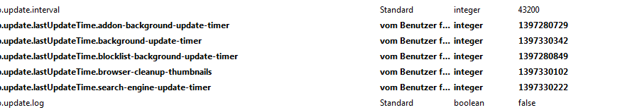 dick dargestellte einträge zeigen an wenn etwas von der firefox grundeinstellung abweicht oder nachträglich