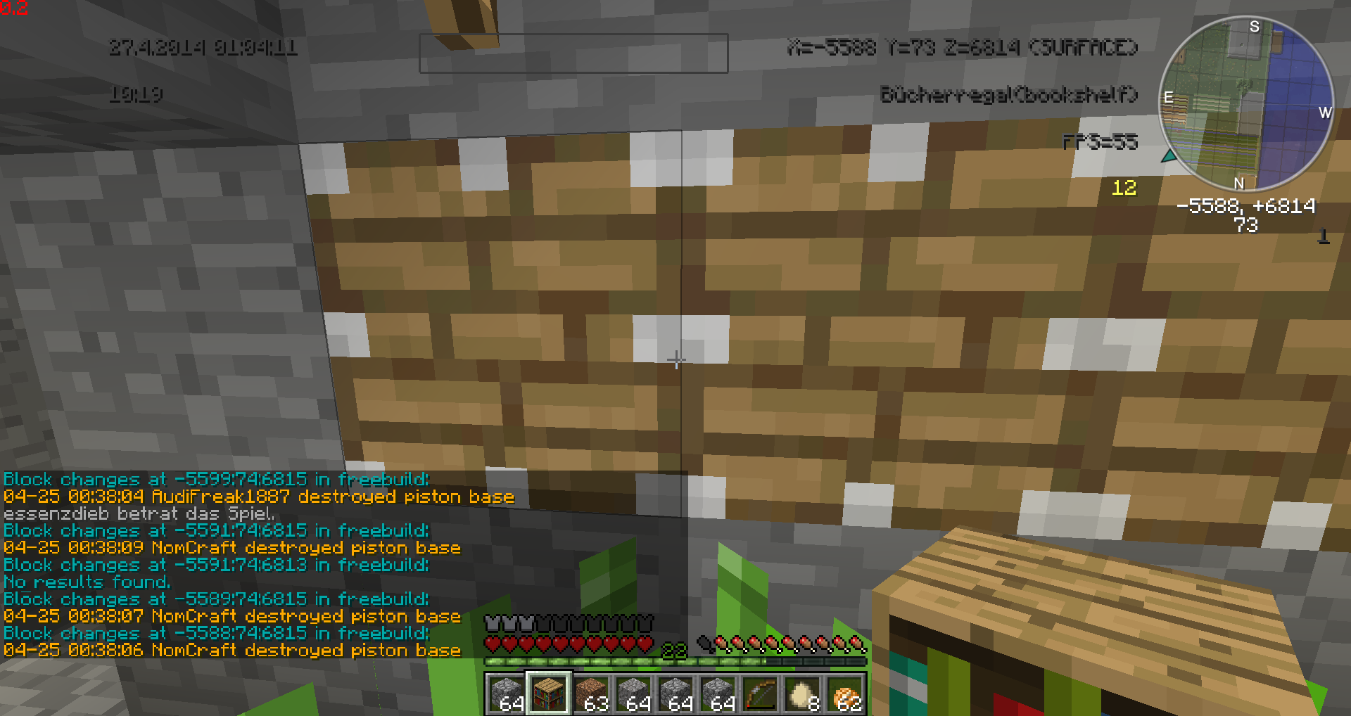NomCraft hat bei KingBenni1st gegrieft! Gestohlene Blöcke: 757x Rollback von xXDragonIIXx Gesamtzahl der Blöcke: 757 Strafe: Permbann - Da Neuling zum Zeitpunkt des Griefs. PE:#145 [Strafe offen]