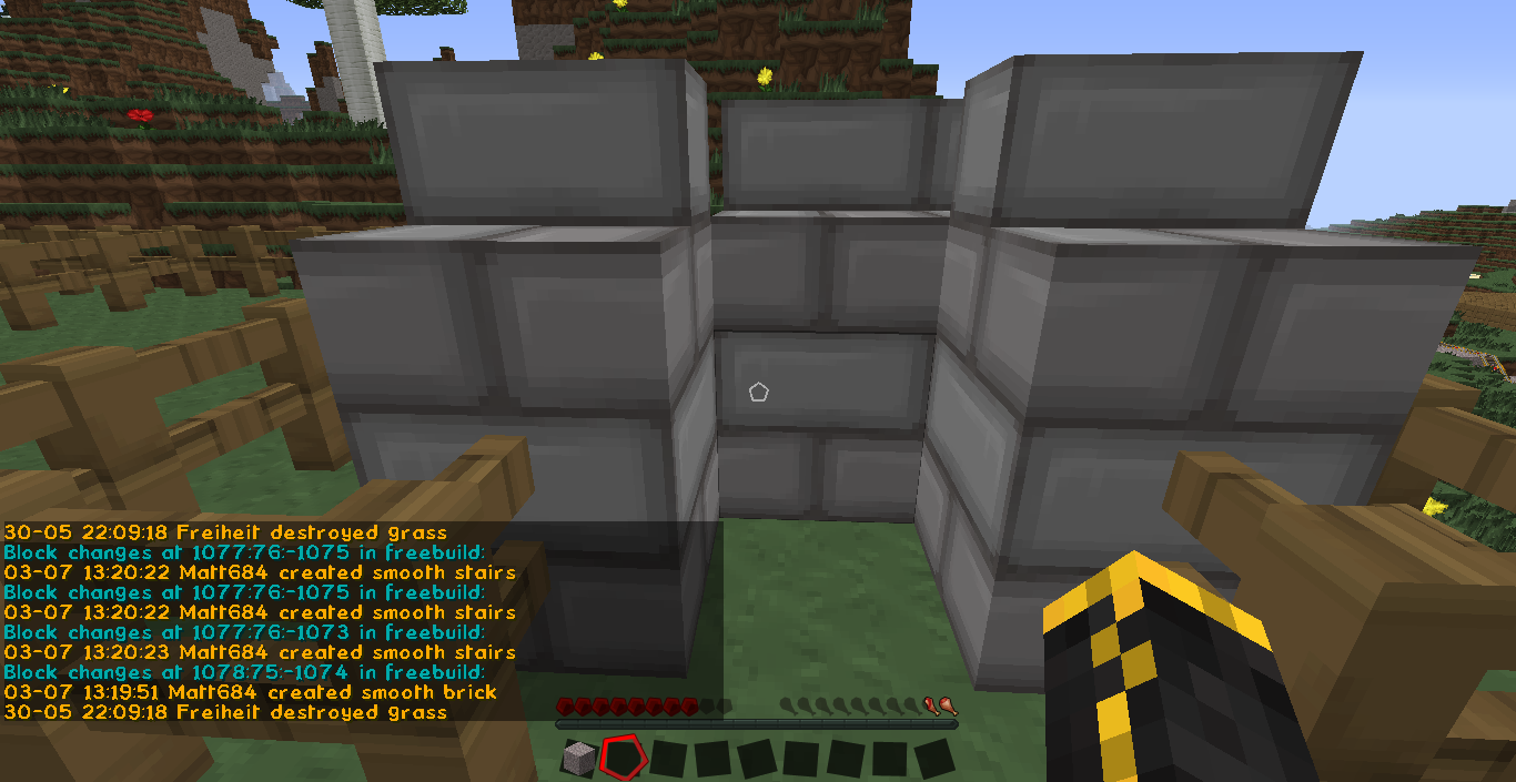 Matt684 hat bei Freiheit Gegrieft und Blöcke gesetzt Gegriefte& gesetzte Blöcke 1x Cobblestone 5x smooth Brick 4x smooth stairs Gesamtzahl der Blöcke: 10 Pe Nummer : 1774 Strafe: 4000 Geldstrafe 30 Min Jail [Strafe vollzogen] Vollzogen am 24.07.2014 um 19:15