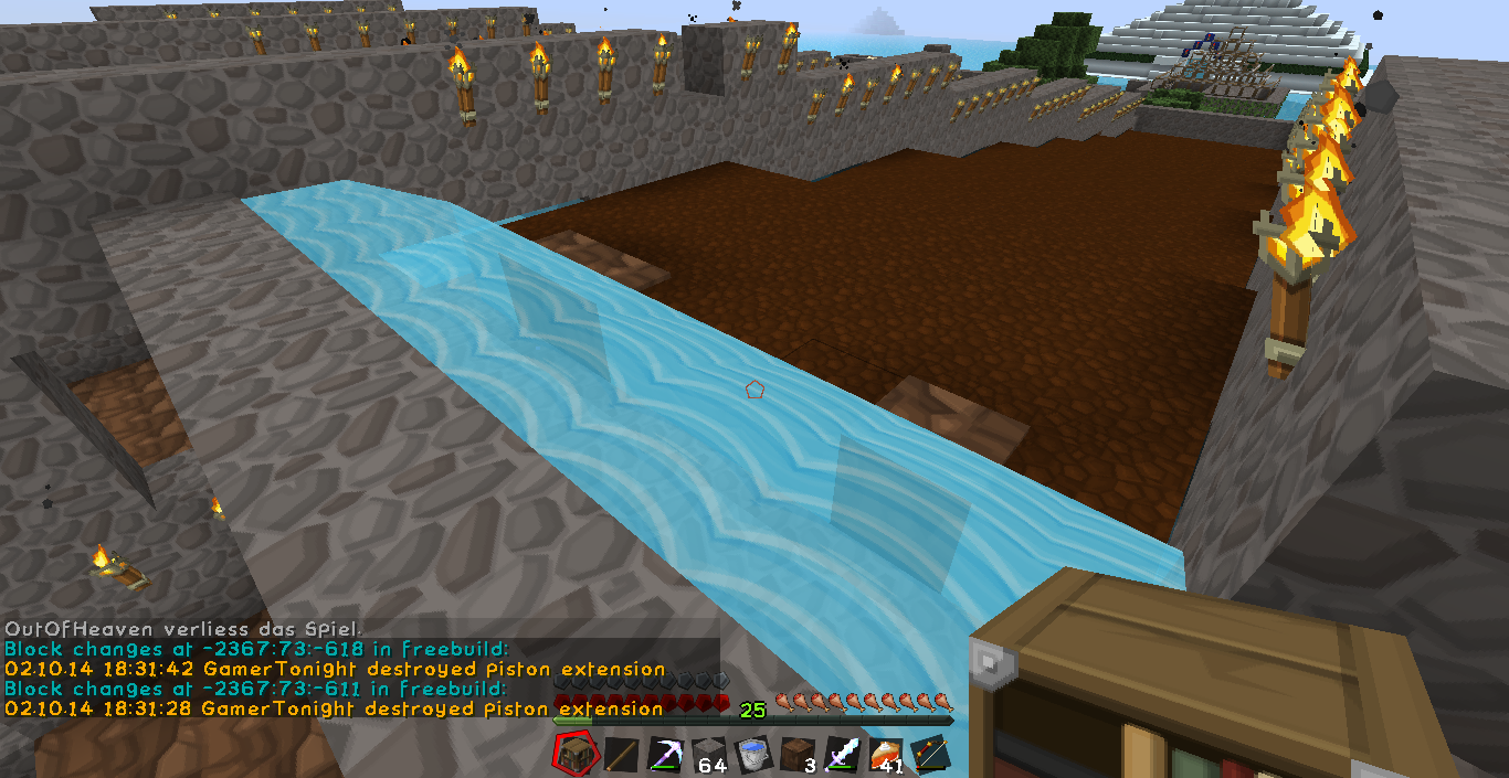 GamerTonight hat bei DaSemme gegrieft Gestohlene Blöcke pistons x8 fackel x2 cobble x1 Strafe: Jail: 60min Mark: 4400 pe nummer: 3725 [Strafe offen] Hat sachen zurück gegeben werde ich dasemme später weiterleiten und hab ne strafmilderung gemacht von 82 auf 20m runter -Eagle