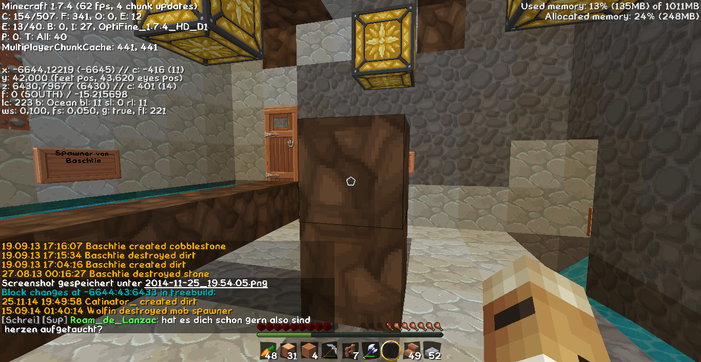 [Akte] Wolfin Wolfin hat bei Baschtie gegrieft! Pe Nummer: 4912 Gestohlene Blöcke: 2x stone 1x spawner 2x cooblestone Gesamtzahl der Blöcke: 5 Strafe: Verwarnung - Da Neuling zum Zeitpunkt des Griefs. [Strafe offen]Verwarnt ~Sabse