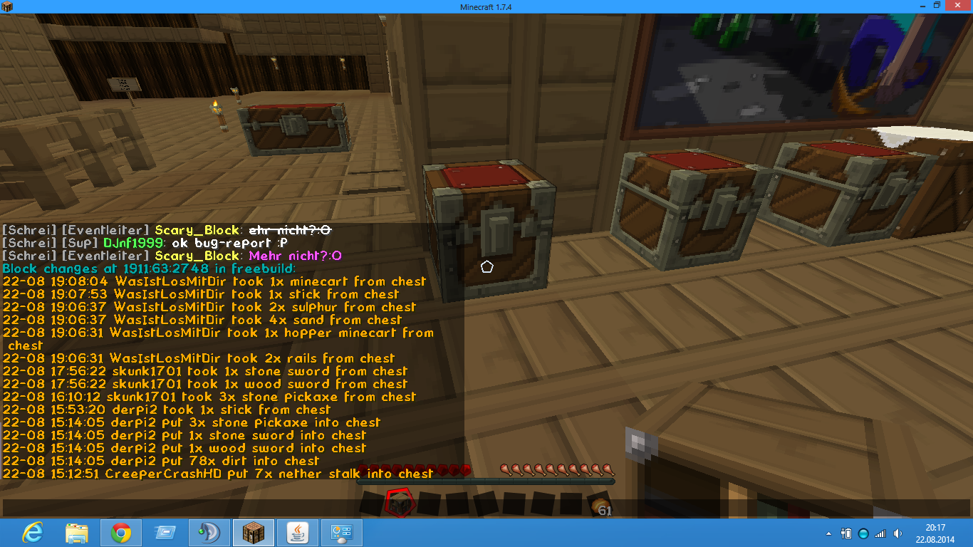 [Akte] WasIstLosMitDir? WasIstLosMitDir? hat bei Solzucht gegrieft! Pe Nummer: 2659 Gestohlene Blöcke: 2x kleiner Kistengrief 1x Sicherung Strafe: 60 Minuten Jail & 10800 Mark Geldstrafe! [Strafe offen] Done by Eagle offline gejailt