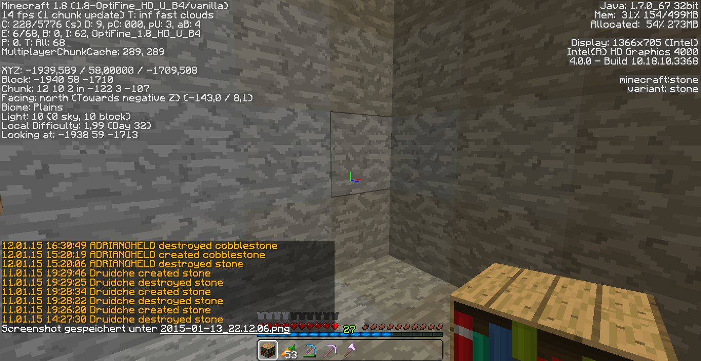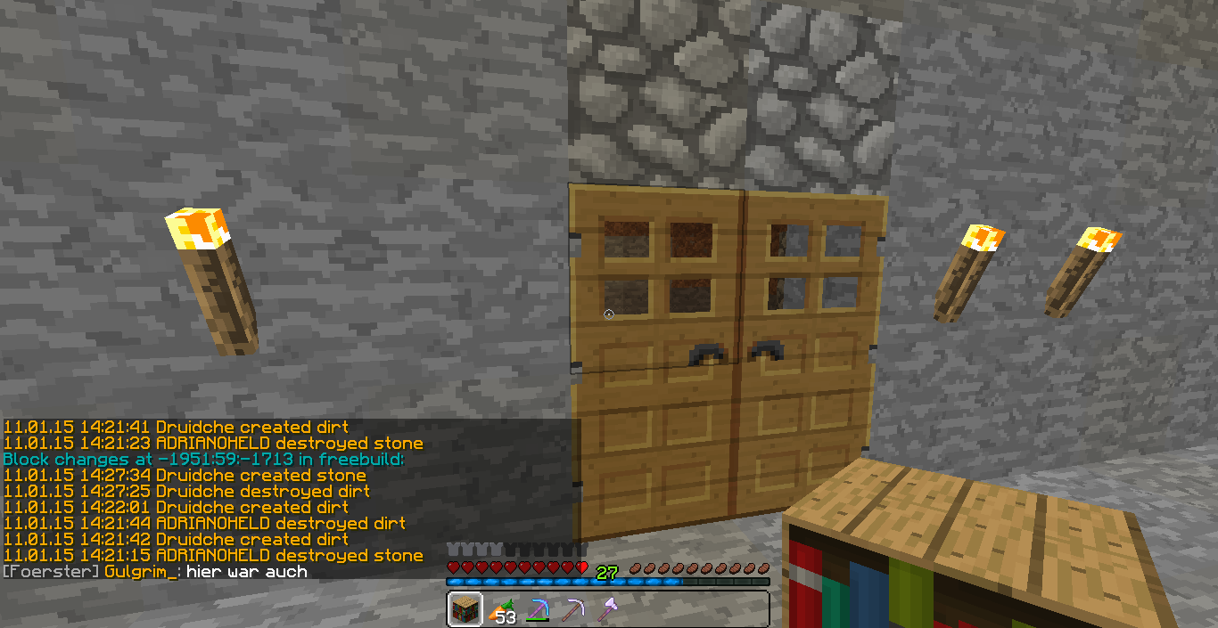 [Akte] Druidche Druidche hat bei Birdy099 Gegrieft Gestohlene Gegenstände: 1x Stone (gesetzt) 1x leaves Gesamtzahl der Blöcke: 2 Strafe: 800 Mark PE-Nummer:5292 [Strafe offen] Konnte nicht bezahlen daher Eingesperrt -Eagle