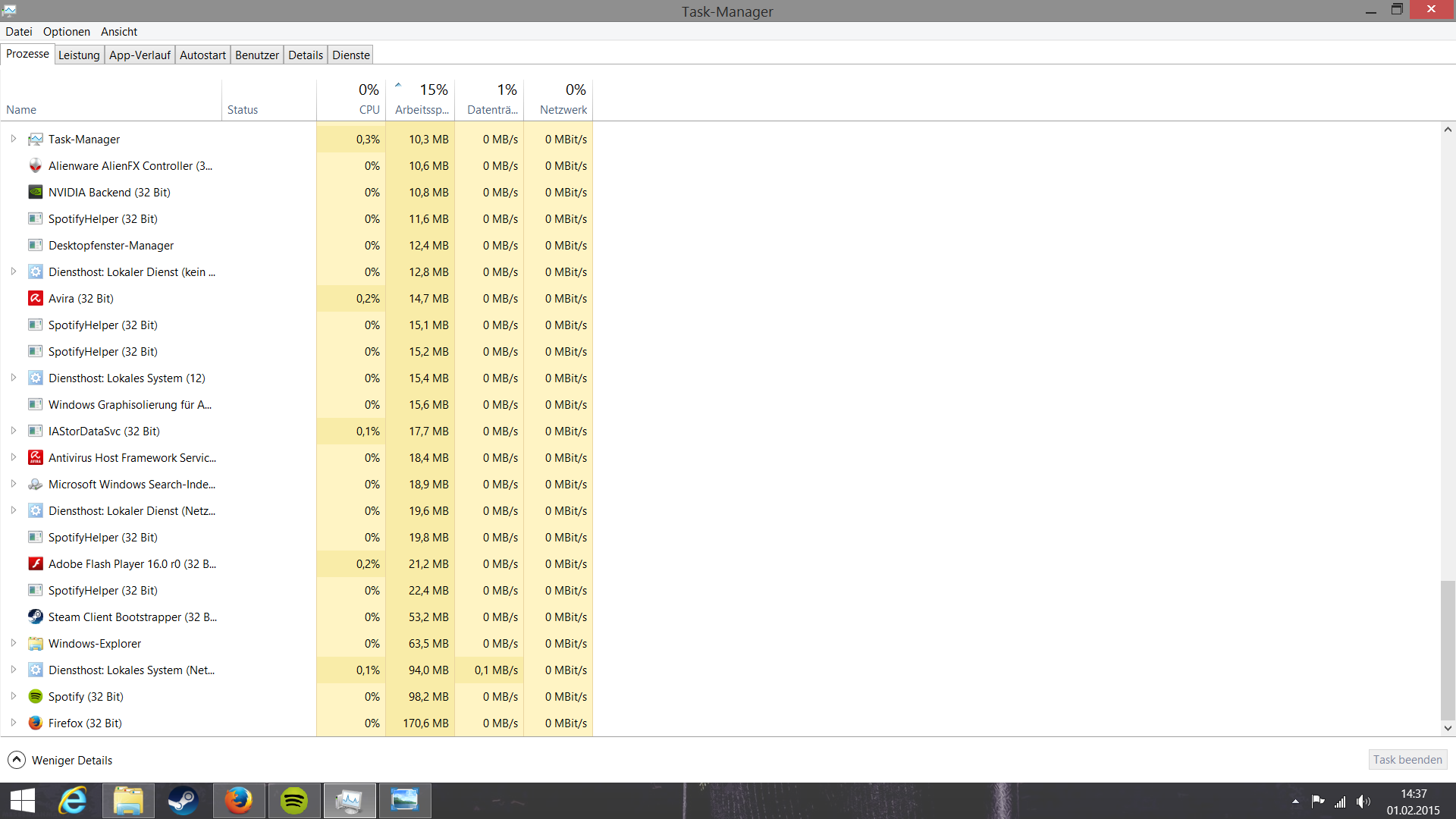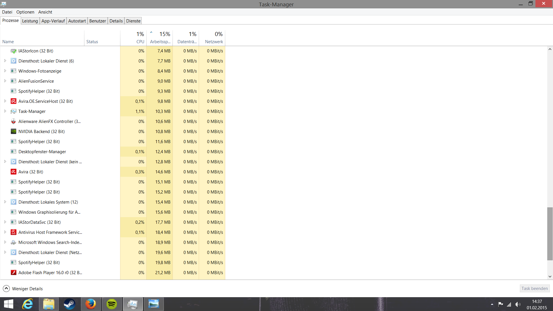 Mhh also deine Prozesse geben gar nichts her^^ Da ist der Verbrauch total normal, kein fest gefressene Datei oder so was^^