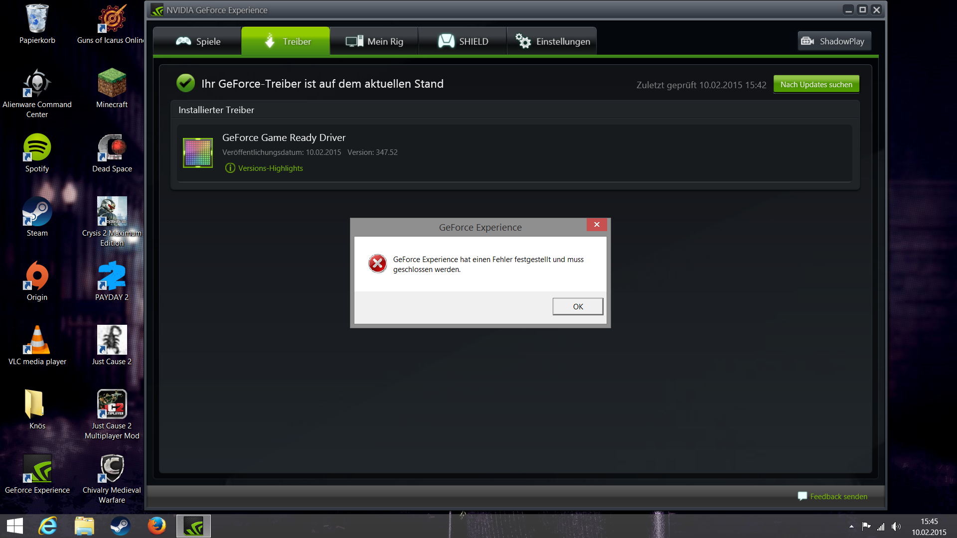 Der Anzeigetreiber "NVIDIA Windows Kernel Mode Driver, Version 347.25" reagiert nicht mehr und wurde wiederhergestellt.Und dann ging mein pc auf neustart und sagt mir das es ein problem gab und gab mir die fehlermeldung: DPC_WATCHDOG_VIOLATION