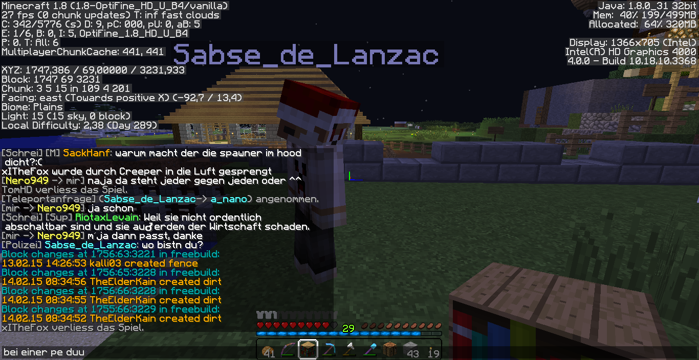 [Akte] kalli03 Pe #6805 kalli03 hat bei TheElderKain gegrieft! Gestohlene Blöcke: 18x fence (abgebaut) 18x fence (gesetzt) Strafe: 120 min jail 14.400 Mark [Strafe offen]