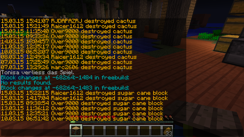 [Akte]Raicer1612 Raicer1612 hat bei Over9000 gegrieft! Gestohlene Gegenstände: 6x cactus 22 sugar cane block Gesmatanzahl: 28 Blöcke Strafe: (nachpflanzbaren Items) 45 Minuten Jail 5600 Mark PE Nummer: 7466 [Strafe offen]done by dj