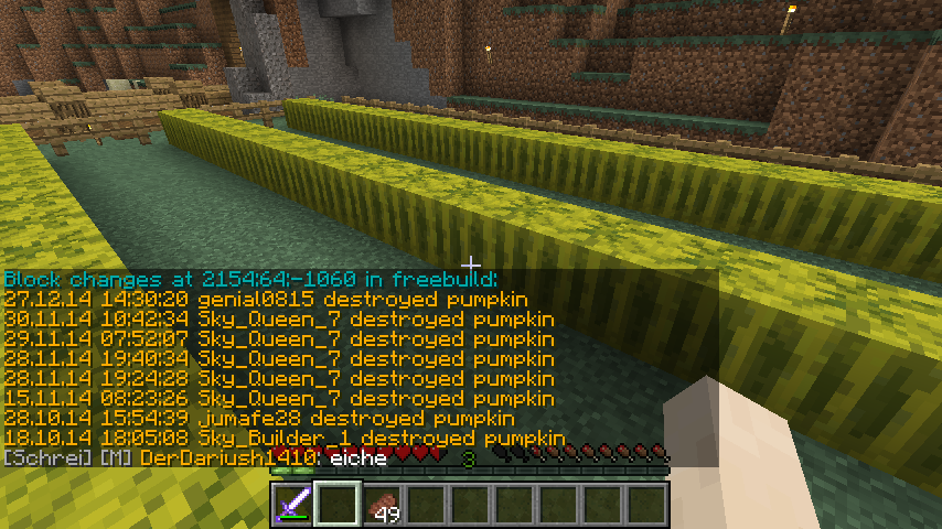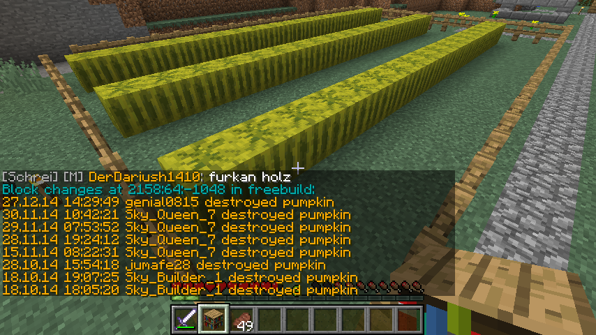 [Akte] genial0815 Pe #5517 genial0815 hat bei Sky_Queen_7 gegrieft! Gesetzte Blöcke: 2x snow block 1x pumpkin Strafe: Verwarnung (da Neuling zum Zeitpunkt des Griefs) [Strafe offen] done by a_nano