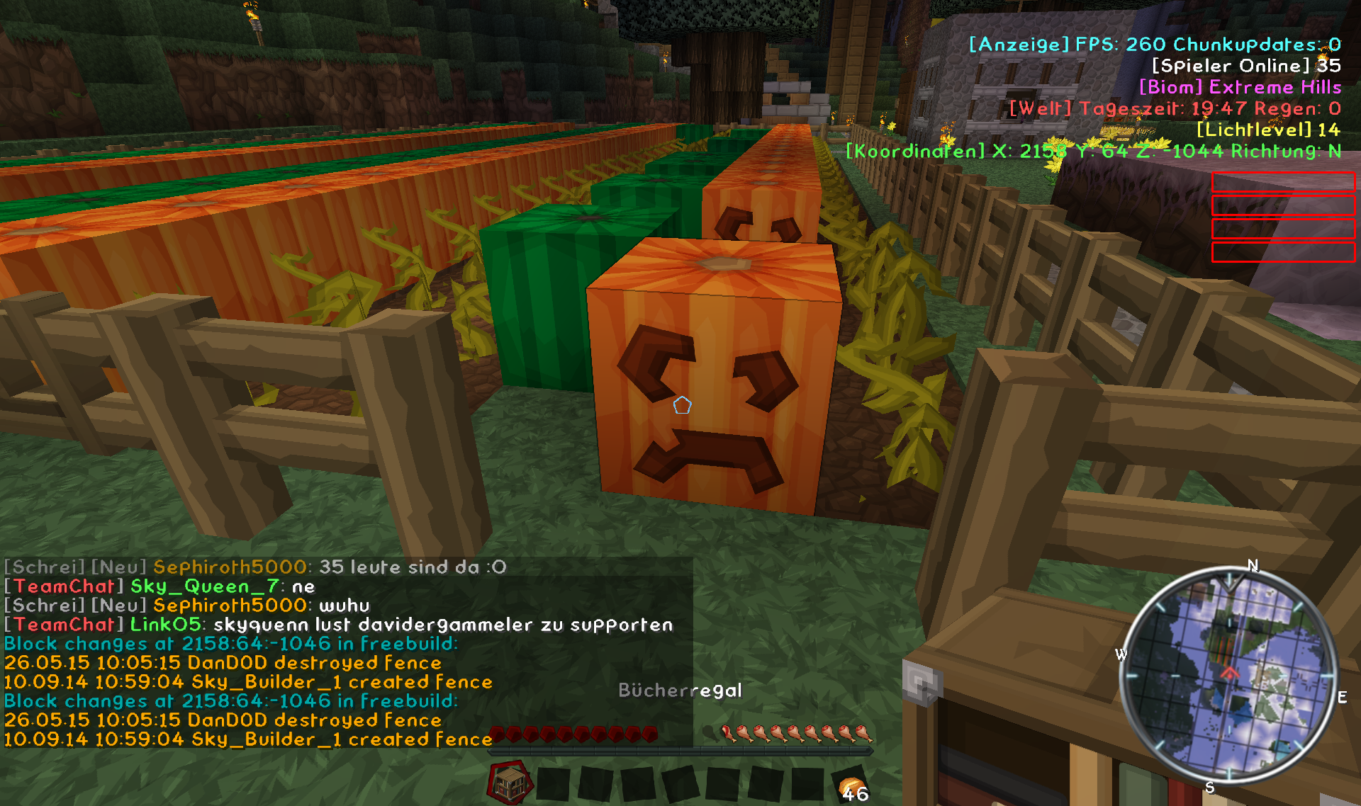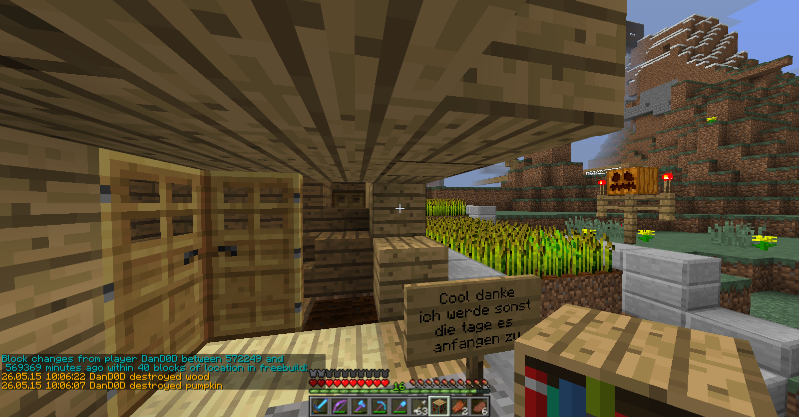 [Akte] DanD0D DanD0D hat bei Sky_Queen_7 gegrieft! Gestohlene Blöcke: 1 zaun 3 Melonen (x0,5) 3 Kürbisse (x0,5) Gesamt: 4 Strafe: 1600 Mark Pe 8451 [Strafe offen][Strafe done by Cold3lood]