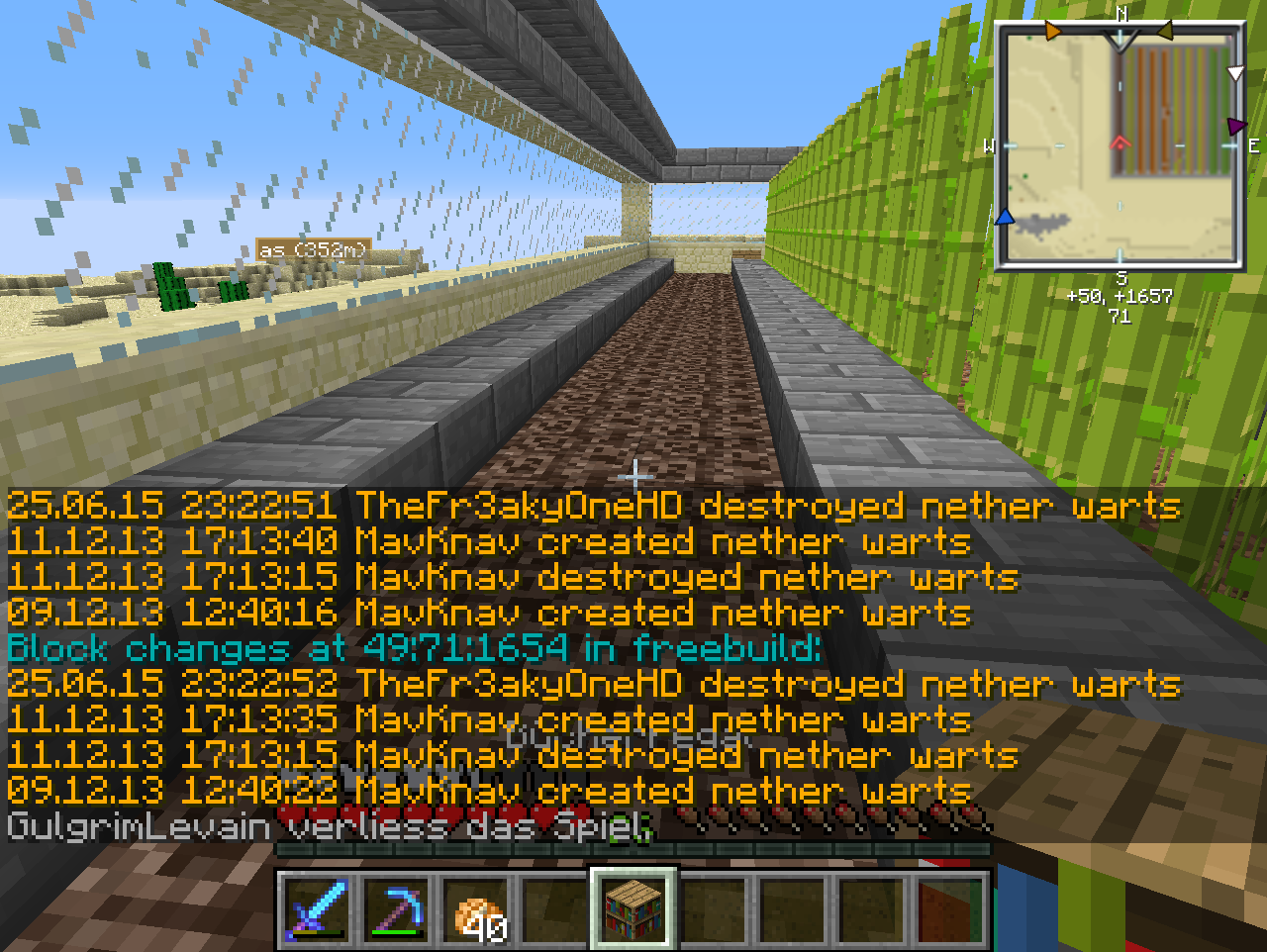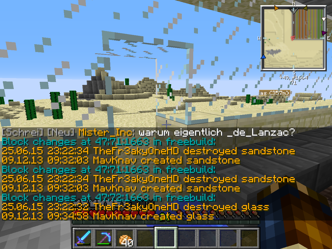 [Akte] TheFr3akyOneHD TheFr3akyOneHD hat bei cobble20 gegrieft! Gestohlene Gegenstände: 15x Zäune 15x Holzbretter 2x Heu 1x Gras 3x Stein 4x Cobble(gesetzt) Gesamtzahl der Blöcke: 40 Strafe: 120 Minuten Jail + 16000Mark+ Rollback von Cheefkoch vollzogen PE-Nummer: 8778 [Strafe offen]