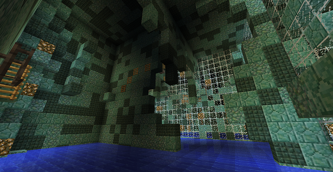 Nun der Punkt wegen dem Anfänger fehler. Ich war damals gerade erst 3-4 Wochen Architekt und baute Bluewater, habe aber nicht daran gedacht Redstone, Gänge und Großbestandteile der Höhlen aus Stein sind, nun da Ich Ihn Ausgebuddelt habe war natürlich nicht mehr viel zu retten,
