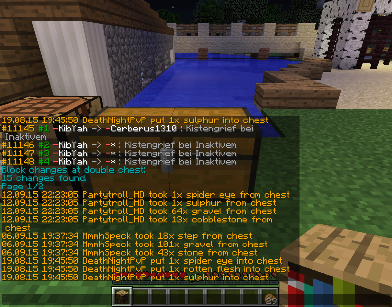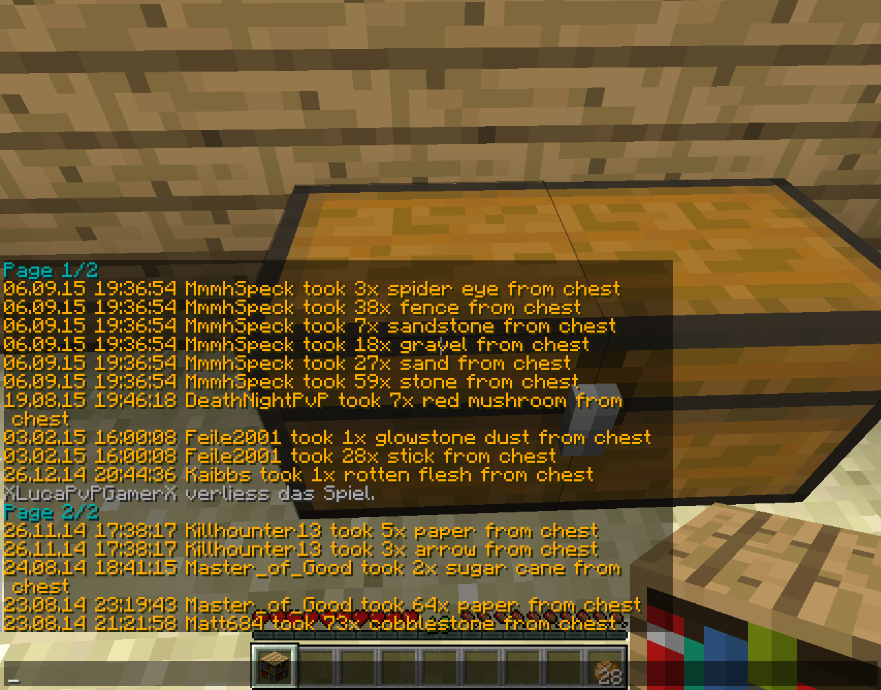MmmhSpeck hat bei Matt684 gegrieft! Gestohlene Gegenstände: 2x großer Kistengriefs Gesamtzahl: 2 Pe-Nummer: 11145 & 11148 Strafe: 1 Tag Tempbann. [Strafe offen] Done by Taiga