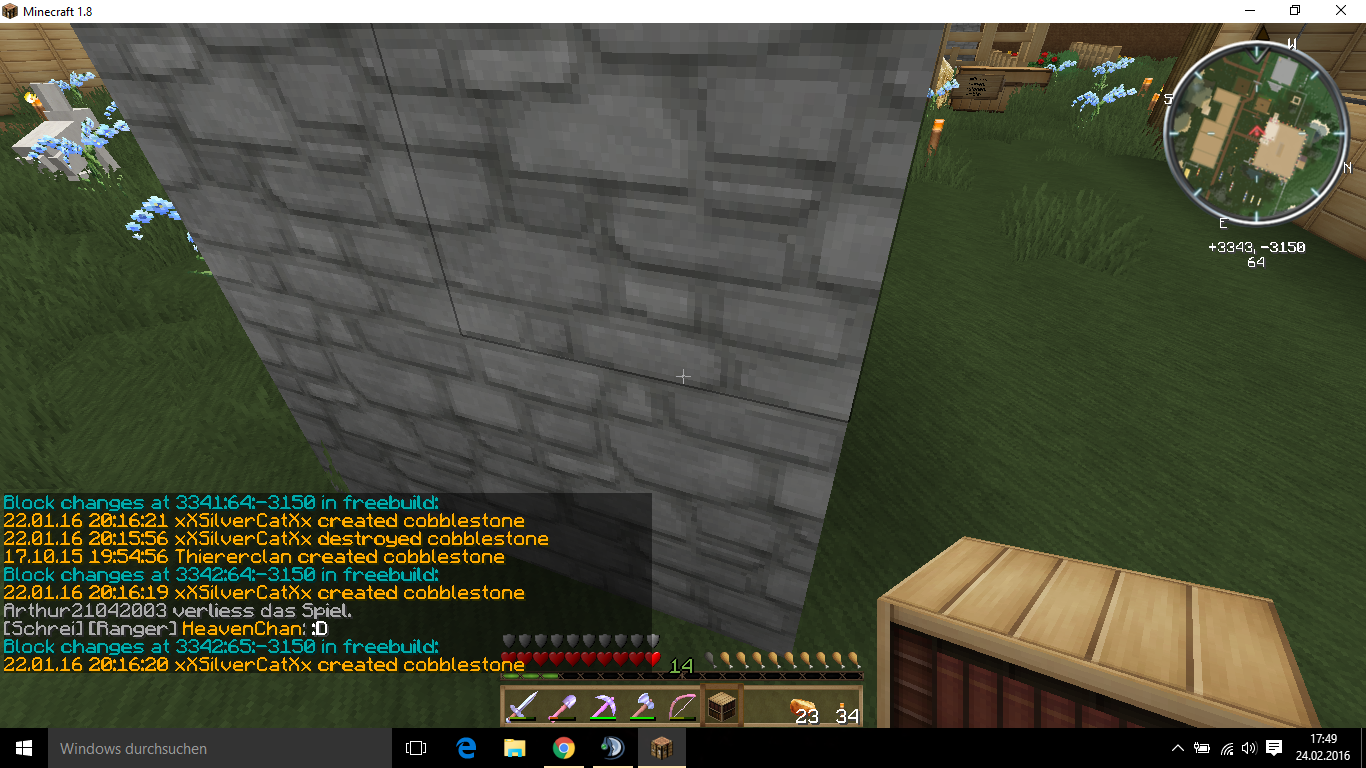 [Akte] xXSilverCatXx xXSilverCatXx hat bei Thiererclan blöcke gesetzt! Gesetzte Blöcke: 2 Dirt 3 Stein Gesamtzahl der Blöcke: 5 Bemerkung: Die Anordnung der Blöcke solle ein Geschlechtsteil darstellen Strafe:2000 Mark -Nummer:11857 [Strafe offen] Done by Alex, Offline gejailt http://img5.fotos-hochladen.net/uploads/20160122182ep9hqsftdr.png