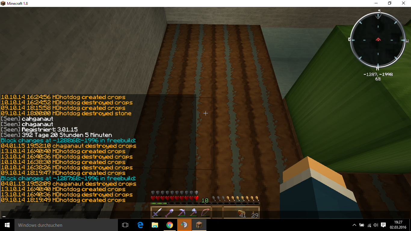 [Akte] chaganaut chaganaut hat bei Cirius1 gegrieft! Gestohlene Blöcke: 1 weizen 9 cobblestone 2 dirt (gesetzt) 8 smooth brick 3 zaun 1 laub 1 workbench 2 glassscheiben 1 torch 1 kl. kistengrief Geasmt: 28 + kl. kistengrief Strafe: 105 Min Jail 11200 Mark Pes: 6272, 6274 [Strafe offen] wurde entschädigt.