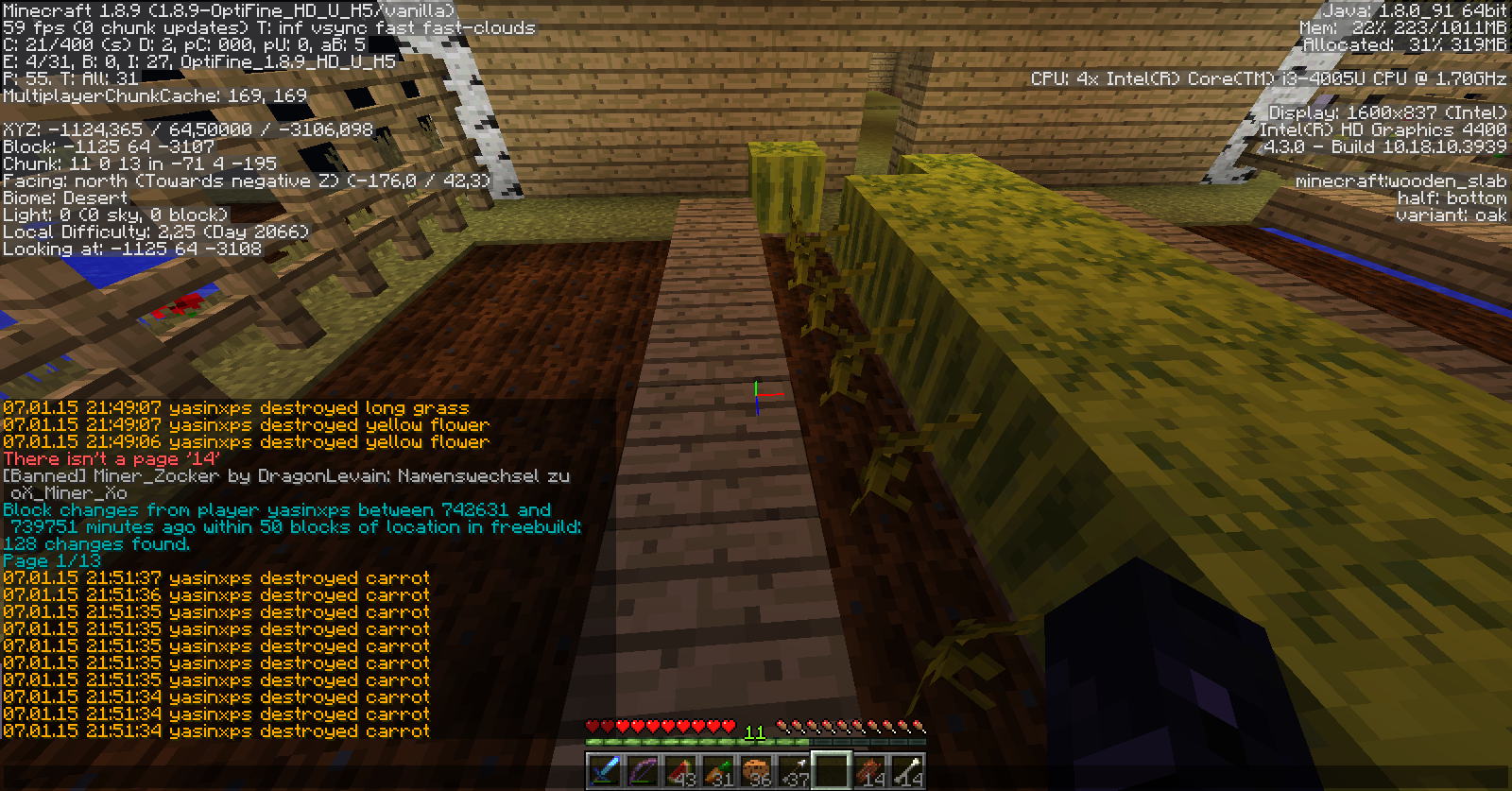 [Akte] yasinxps Pe #6264 yasinxps hat bei bacon68 gegrieft! Gestohlene Blöcke: 64x crops Strafe: 120 Minuten Jail 20.000 Mark [Strafe offen] Done by Yuu