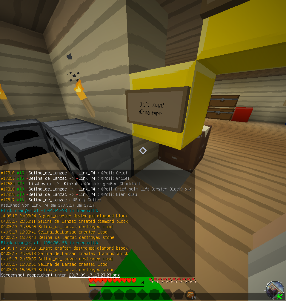 Gigant_crafter hat bei Selina_de_Lanzac gegrieft! Gestohlene Gegenstände: 4x diamond block (36) 1x großer Kistengrief (8) 1x wood Gesetzte Gegenstände: 1x wood Gesamtzahl der Strafpunkte: 46 Strafe [URL:http://www.letsmine.eu/lexicon/entry/39-strafe/?synonym=56]: 90 Minuten Jail 18400 Mark PE [URL:http://www.letsmine.eu/lexicon/entry/34-pe/]-Nummer: #17817 [Strafe offen]