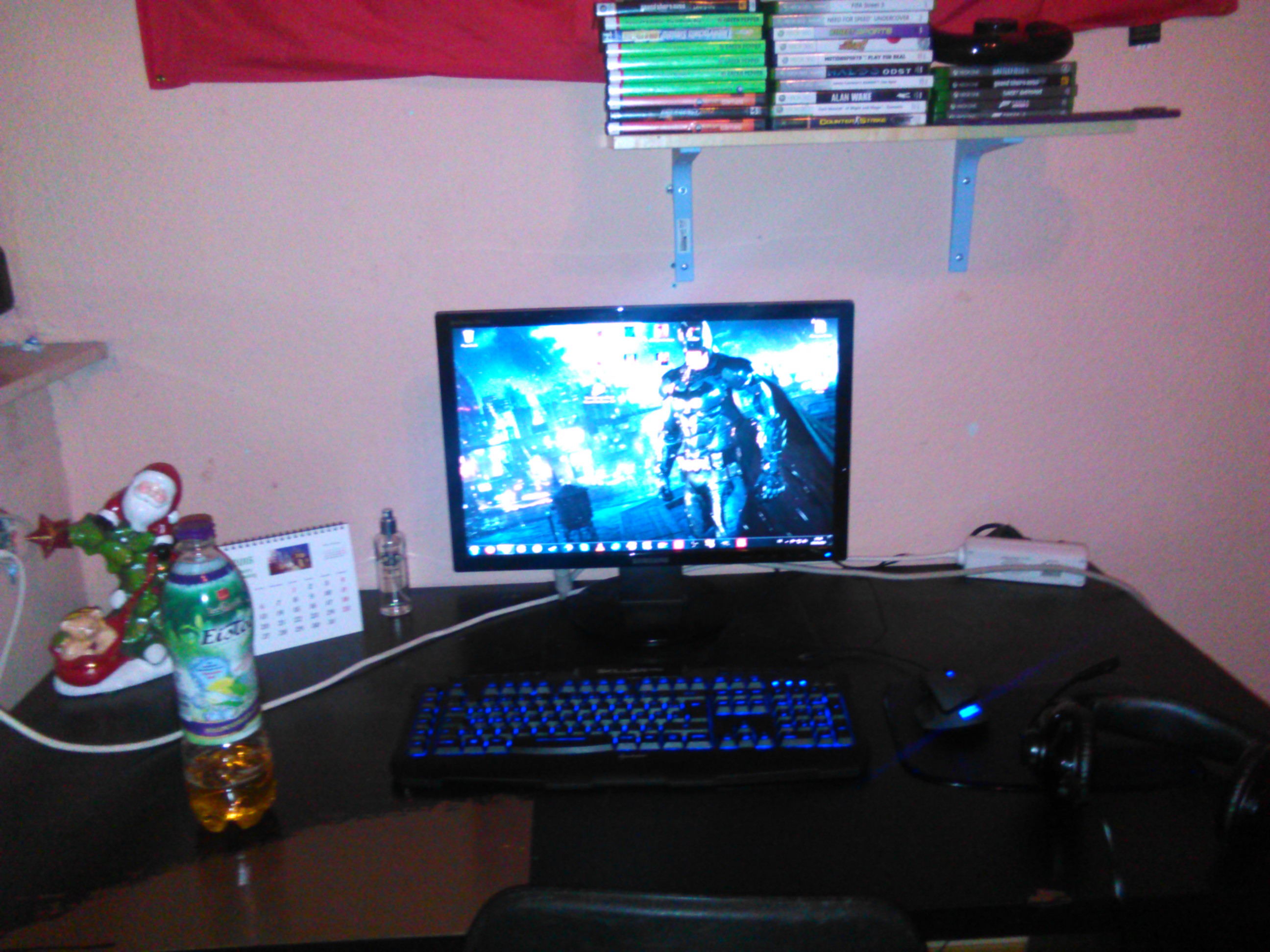 so sieht derzeit meine Zocker-ecke aus ein bisschen unordentlich aber naja das Chaos lässt grüßen also