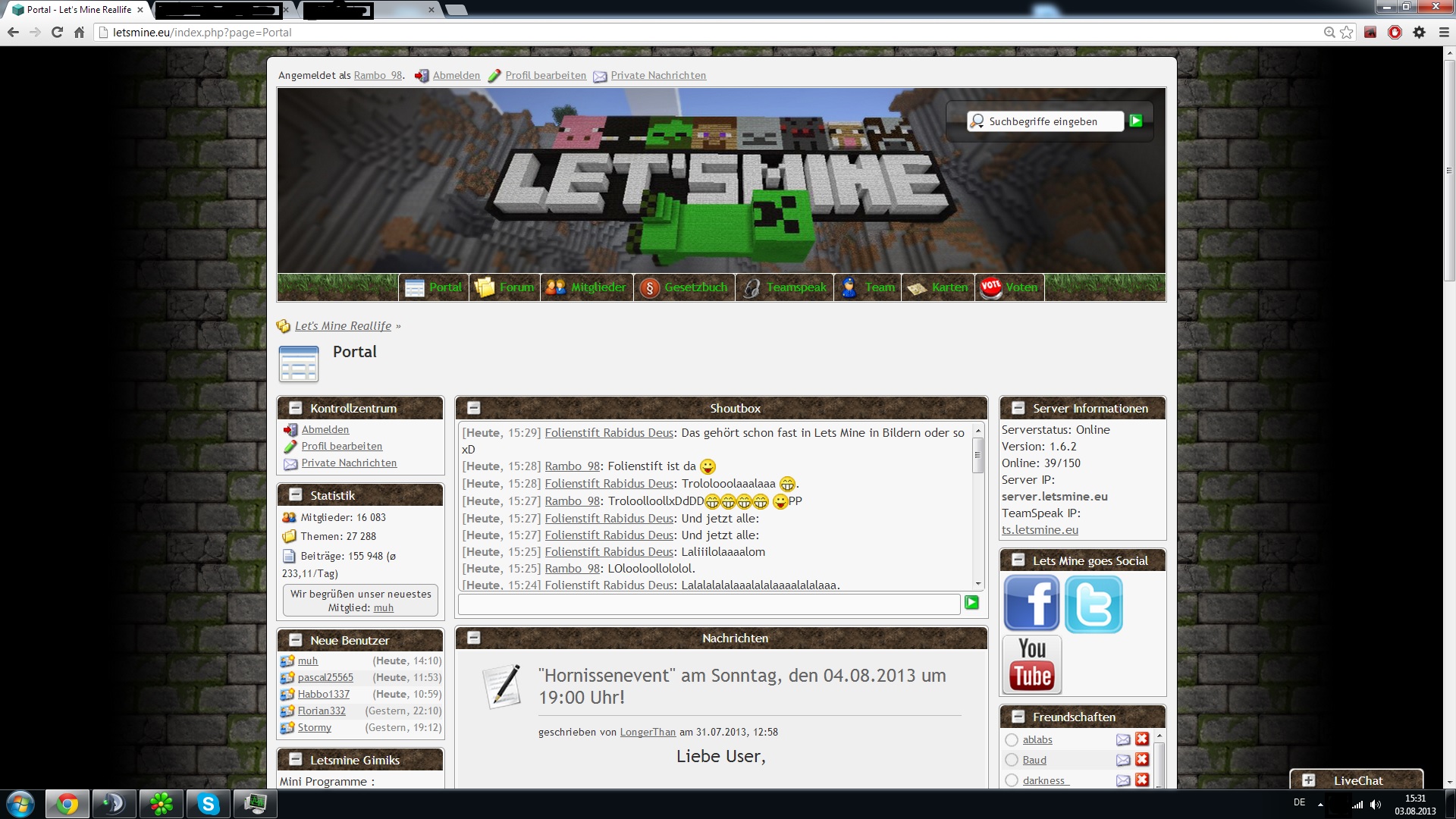 3. August 2013 #686 lmrl.eu Der Screen sagt alles Leute ;DNicht allzu ernst nehmen^^//edit das passiert wenn man 2 screenshots aufeinander legt -.-