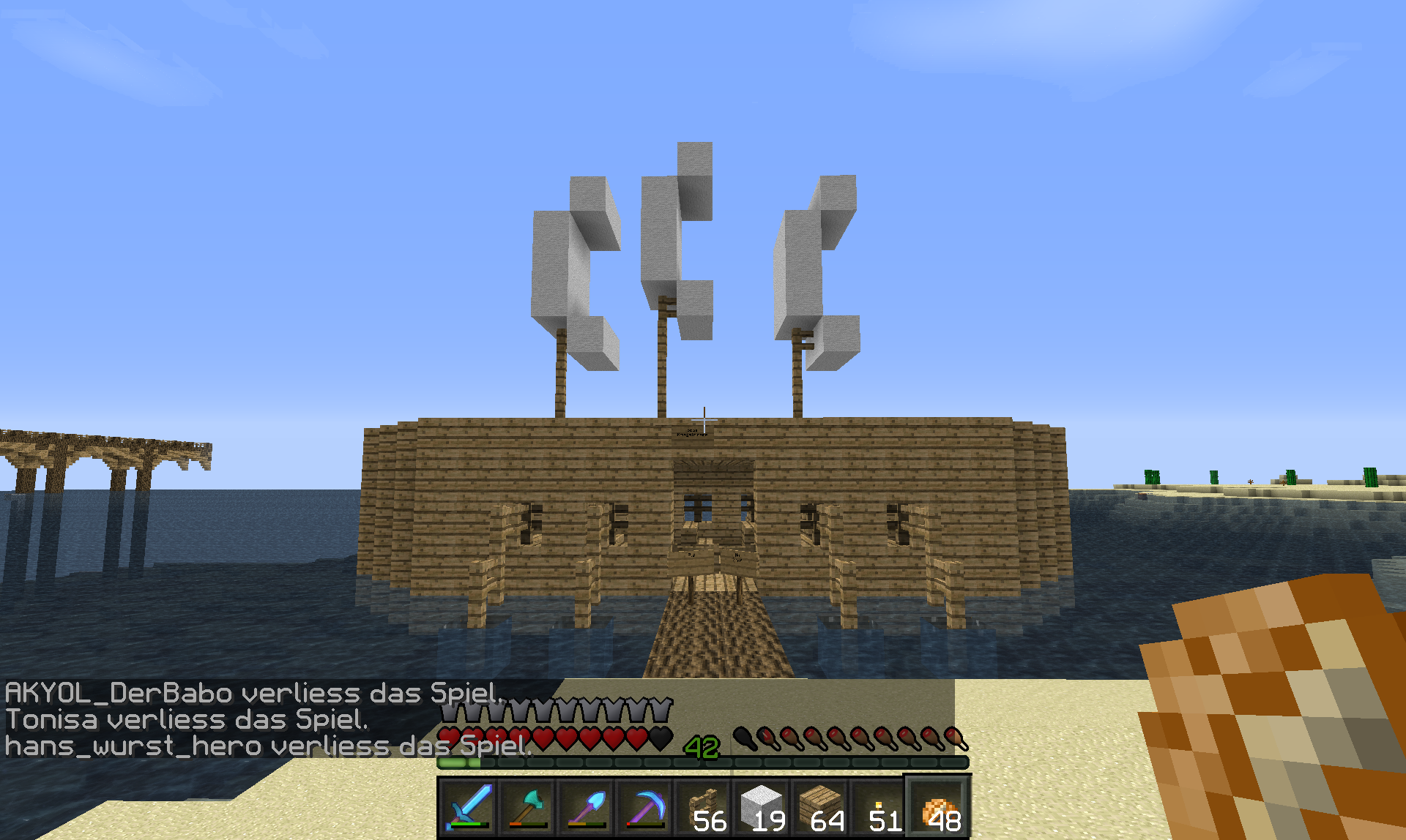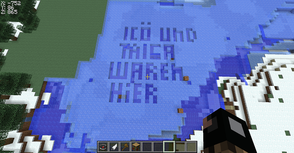 (Eisenblock = 2. Platz, Goldblock = 1. Platz. Die Papierzettel sind in "?" benannt,