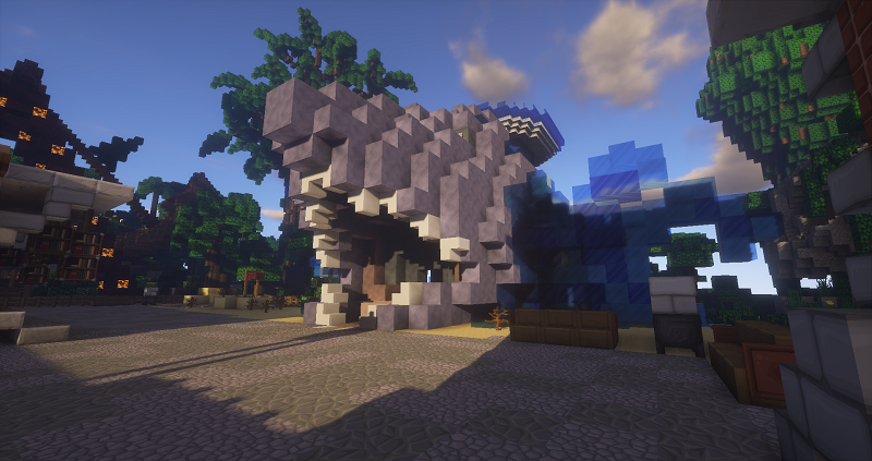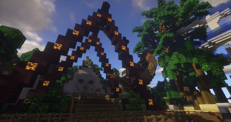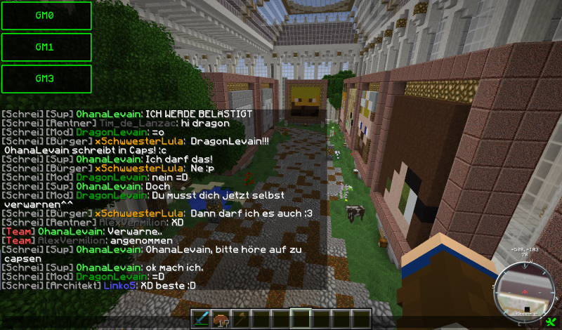 HIer ist ein Bild von dem japanischen Tempel und der japanischen Festung, die von @4afox , @Das_Dingo und @mayerle321 in Pr0hattan gebaut wurden. Wirklich beeindruckend