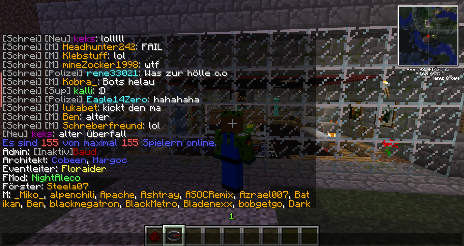 Hi Leutz ein "freudiges Ereignis" hat sich heute zugetragen nachdem wir gestern schon den bis jetzt bestehenden Record von 104 Usern Online gebrochen haben Mit 107 Usern haben wir heute Sage und schreibe 155 User auf dem Server gehabt auch wen das nicht ganz Fair war da dies Leider durch einen Bot angriff zustande kam. Aber auch ohne Bot werden wir diese Zahl knacken! da bin ich Felsen fest von überzeugt.