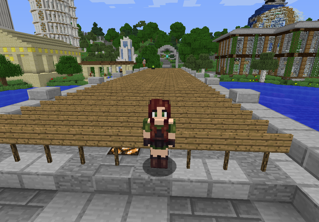 1 - Mein neuer Skin, am Spawnbrunnen mit den herabfallenden Blättern (Danke an @DragonLevain für den Awesome Mod im Modpack)