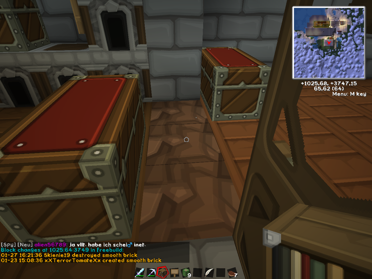 Nach einem Roleback waren es über 200 Blöcke! Also ein Permabann direkt ausgeführt von mir.