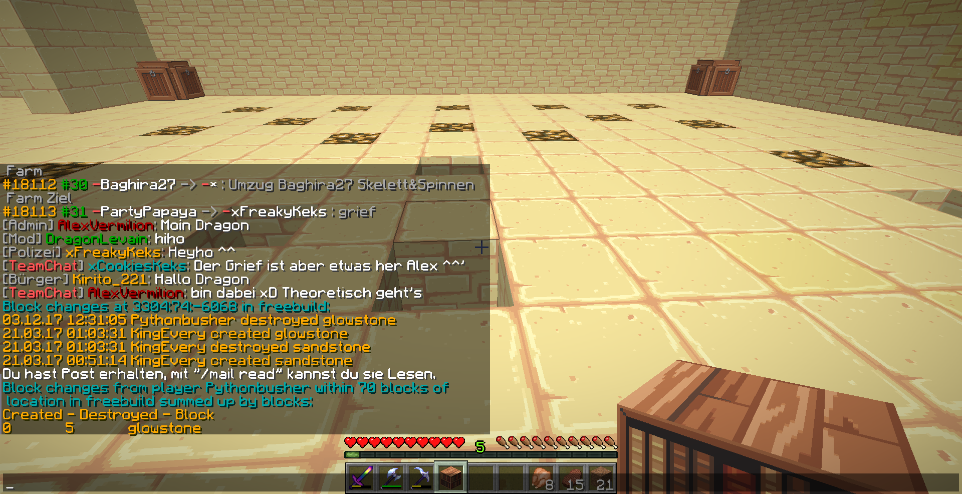 Jeder, der auf dem Server Creativrechte hat, kann dir bei diesem Problem helfen. Du kannst alternativ auch einfach einen anschreiben, wenn du ihn grade siehst.