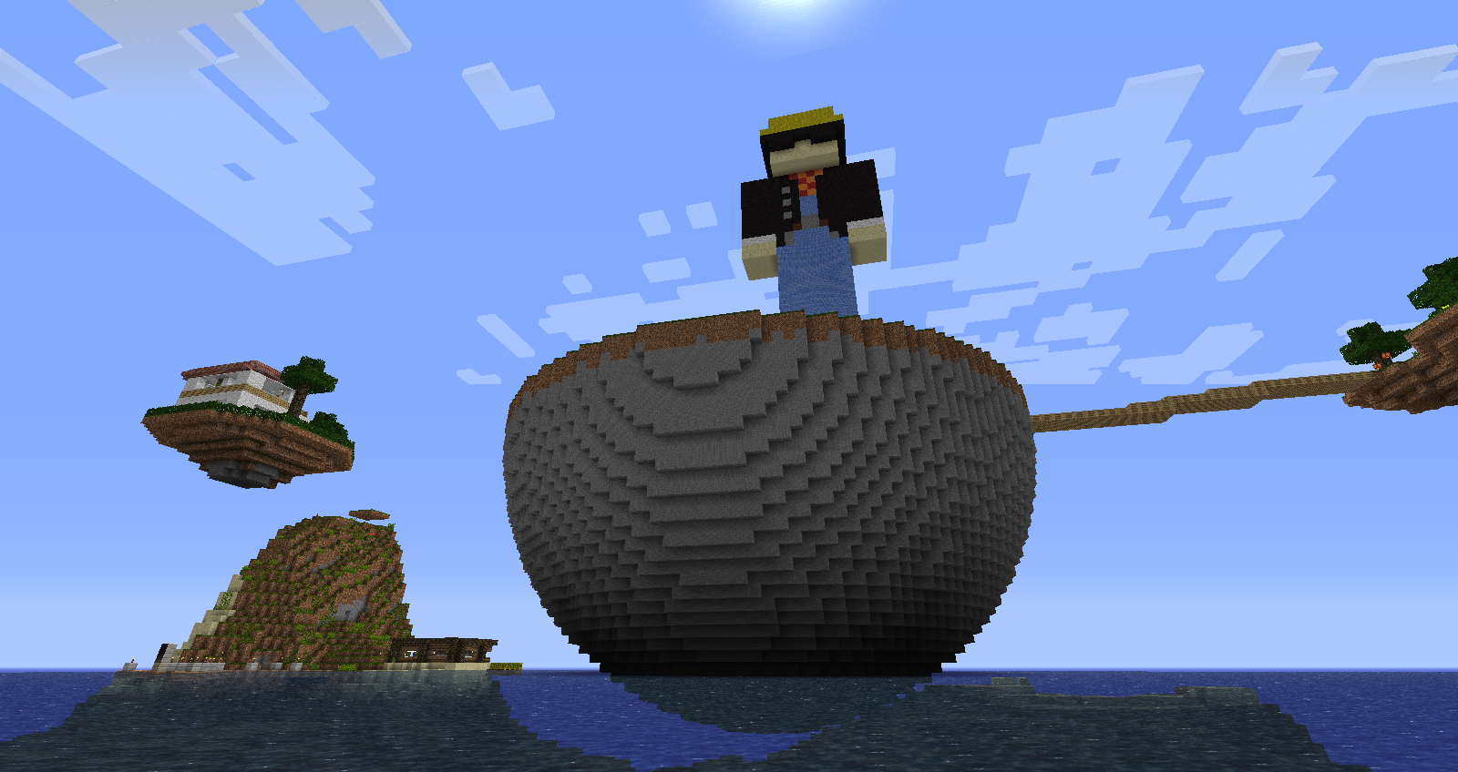 Material: Die Sphären sind aus (clean)Stone gebaut, mit Erdschicht (oder Sand im Wüstenbiom) obendrauf.