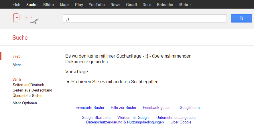 Mal das andere Extrem: Eine eigentlich sehr häufig benutzte, kurze Zeichenkette, aber ganze NULL Ergebnisse.
