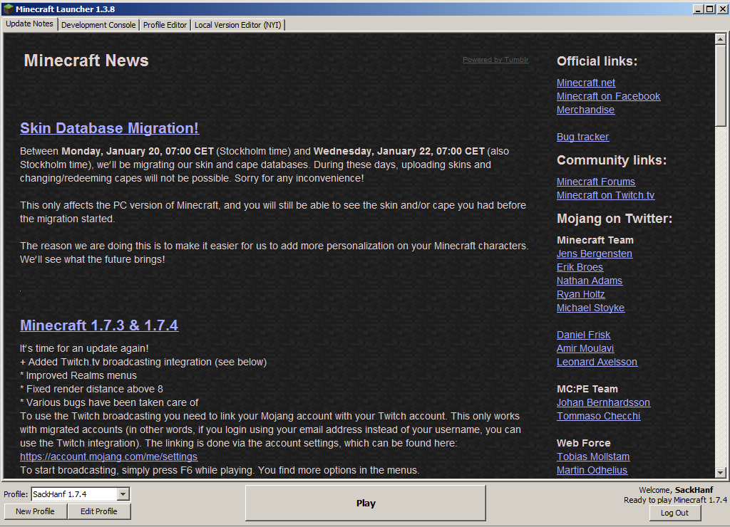 Wenn ich bei Version 1.7.4 auf Play drücke,dann lädt minecraft und ich bin im game.