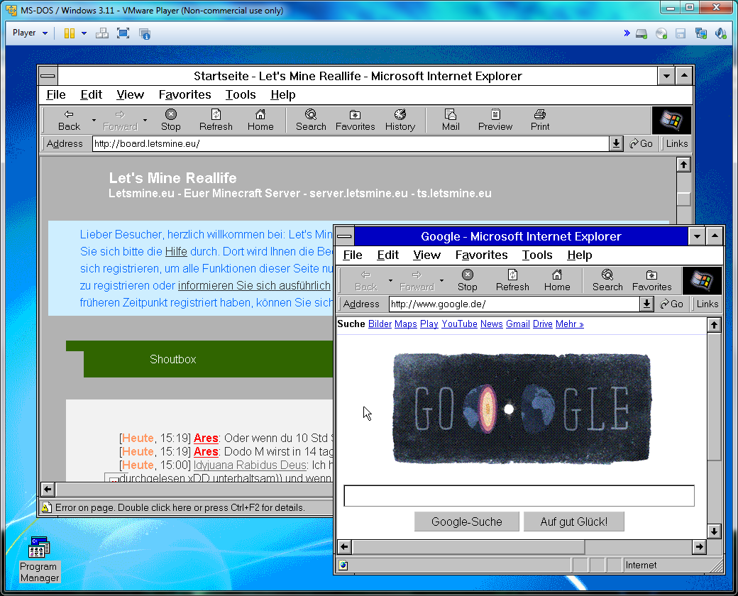 Die Letsmine-Website kann der alte IE leider nicht wirklich darstellen, nach gefühlten 100 Fehlermeldungen (aber Google geht) ![]()