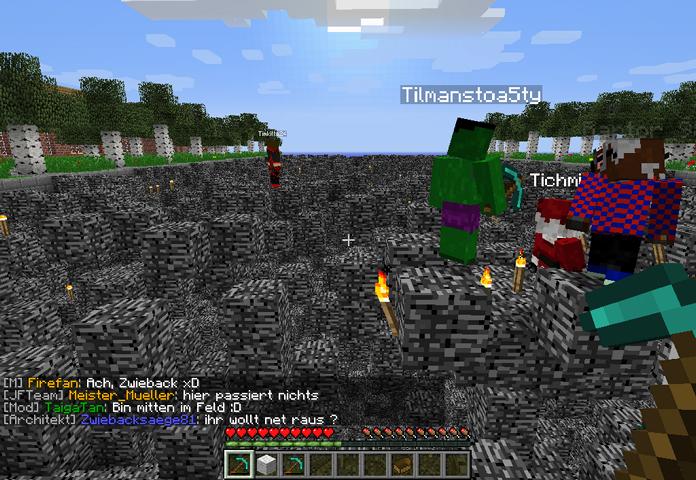 Das Obsifeld war noch so gut wie voll und wir haben angefangen, die ersten Blöcke zu zerstören.