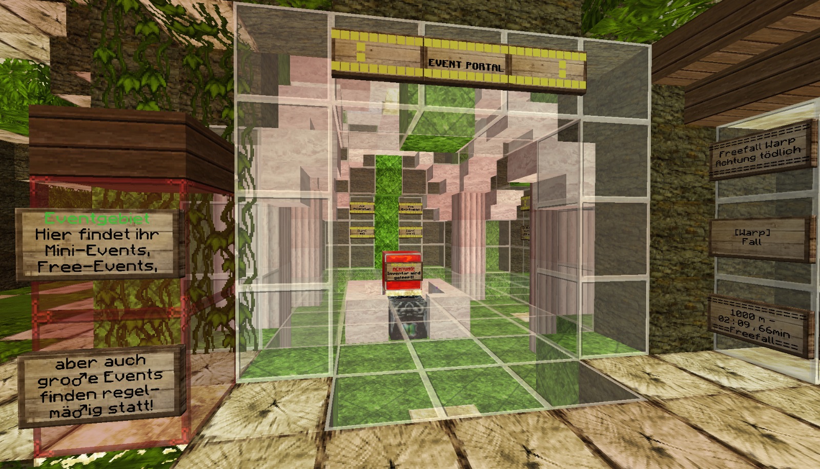 Zudem gibt es auch noch Minievents, Kleine Jump 'n' Run- und Rätselparcours, die durch das Eventportal unten am Spawn erreicht werden können.
