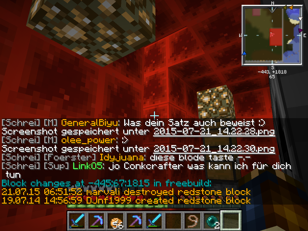 [Akte]marvali [BANNED] Cold3lood 23. Juli 2015 [Akte] marvalimarvali hat bei Thiererclan gegrieft!Gestohlene Blöcke:4x Dirt4x Cobble(2gesetzt)10x Steinziegeln2x Roter Teppich2x Pinker TeppichGesamtzahl der Blöcke: 22Strafe:90 Minuten Jail &8800 Mark Geldstrafe![Strafe offen]