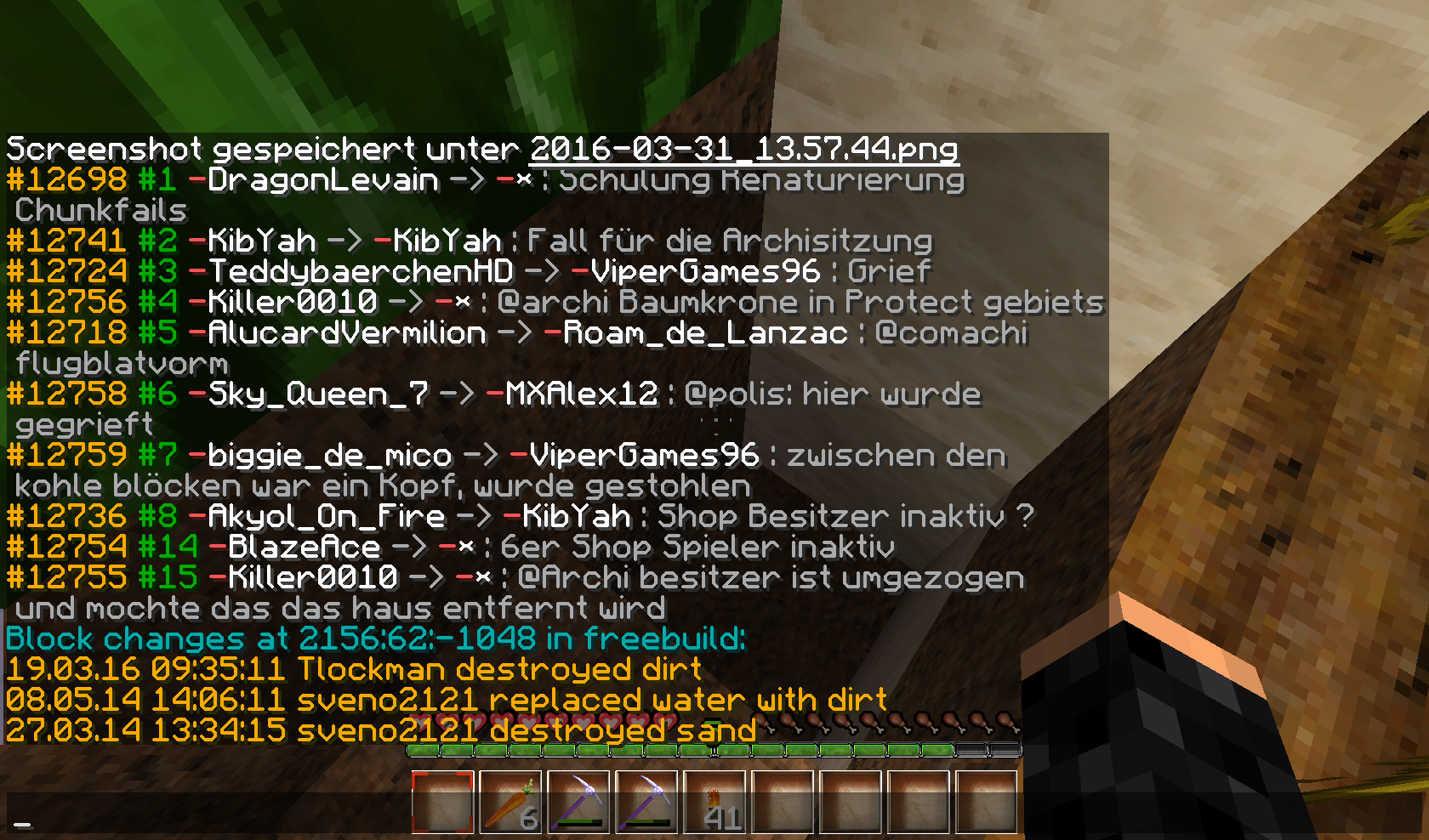 [Akte] Tlockman MXAlex12 29. Februar 2016 [Akte] TlockmanTlockman hat bei EnderHatty24 gegrieft!Gesetzte Gegenstände:31x DirtGesamtzahl der Blöcke: 31Strafe:11600 Mark90 Min JailStrafe Gesammt:90 Min Jail und 13500 MarkPE-Nummer:12378 und12386[Strafe offen] Done by Akyol