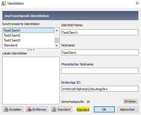 Im TeamSpeak unter Optionen / Extras -> Identitäten den Experten Modus [unten] auswählen.