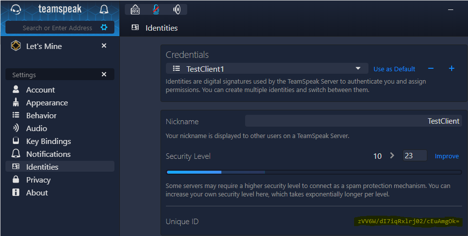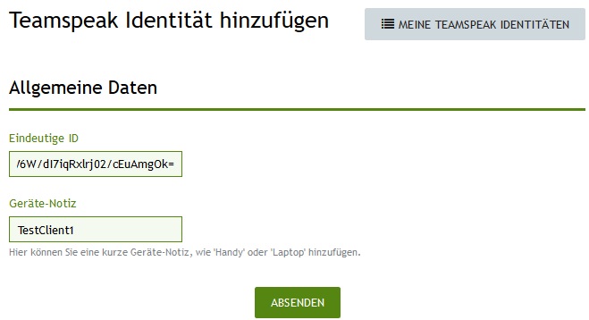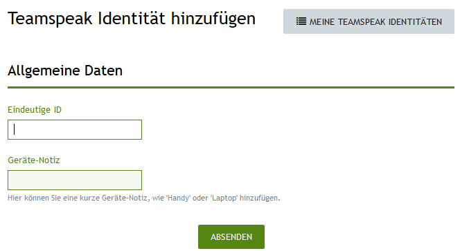 Mit den Folgenden Schritten könnt ihr eine TeamSpeak Identität Hinzufügen.
